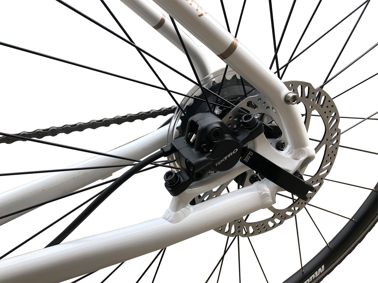 MFX-N、MFD-NではハイドロディスクブレーキにもSHIMANO BR-MT200を採用、ハブもSHIMANO HB-MT200/FH-RM35の センターロック方式ハブを採用し、安定したブレーキングをサポートします。※写真はMFXのものです。